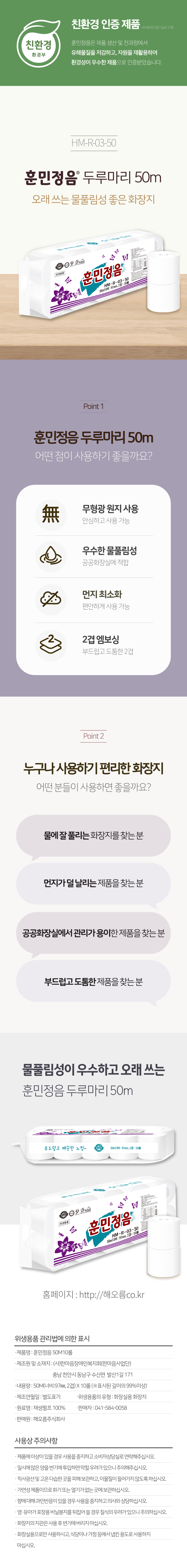 ◈ 훈민정음 화장실용 두루마리 화장지 50M (친환경)